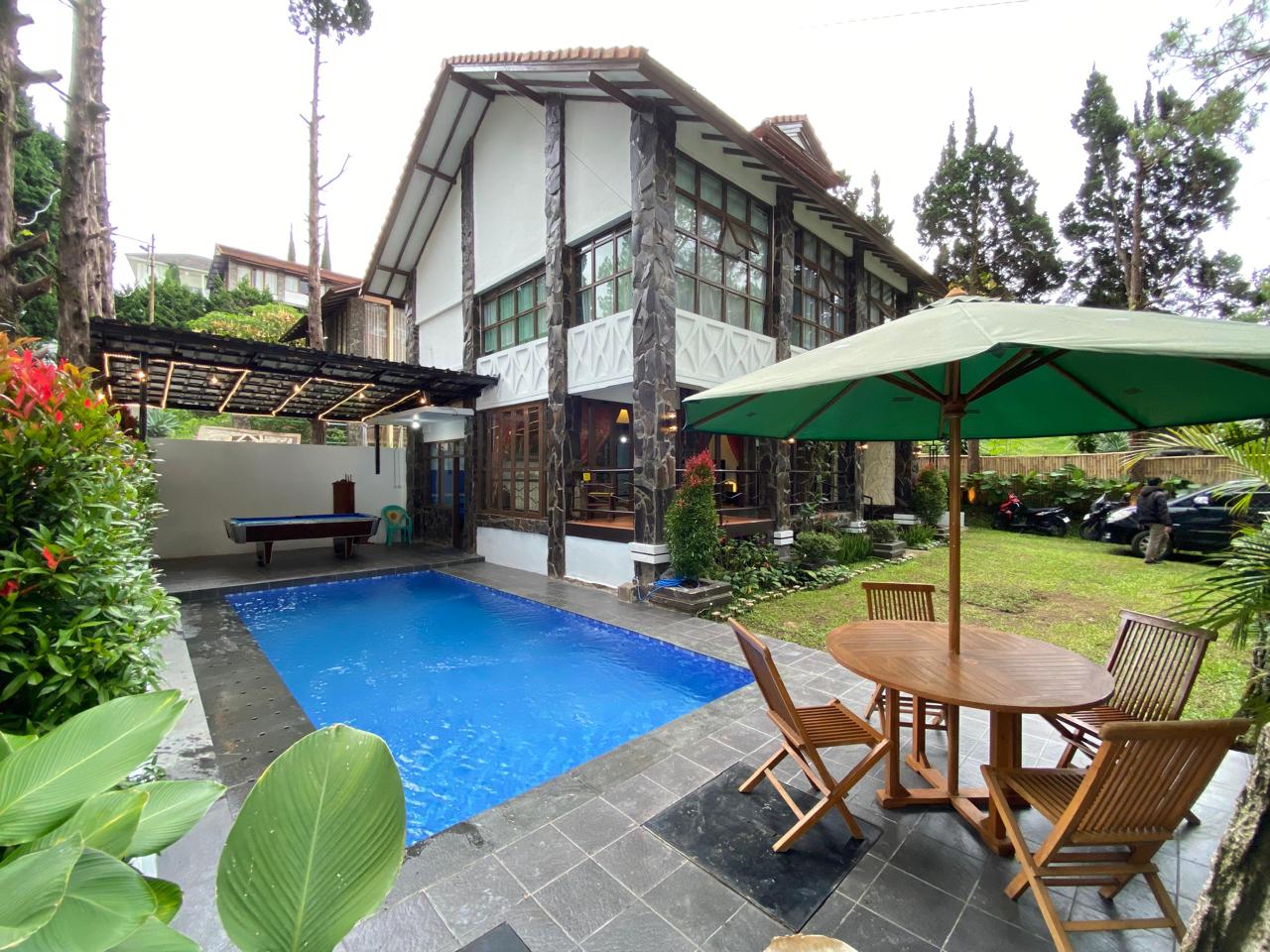 Di beberapa unit villa sudah di lengkapi dengan fasilitas seperti : kamar tidur, kamar mandi, water heater, dapur, ruang keluarga, wifi, karaoke, tv, billiar, alat makan, alat masak, alat bbq, kolam renang, teras, balkon, halaman belakang, area parkir dan masih banyak lagi.